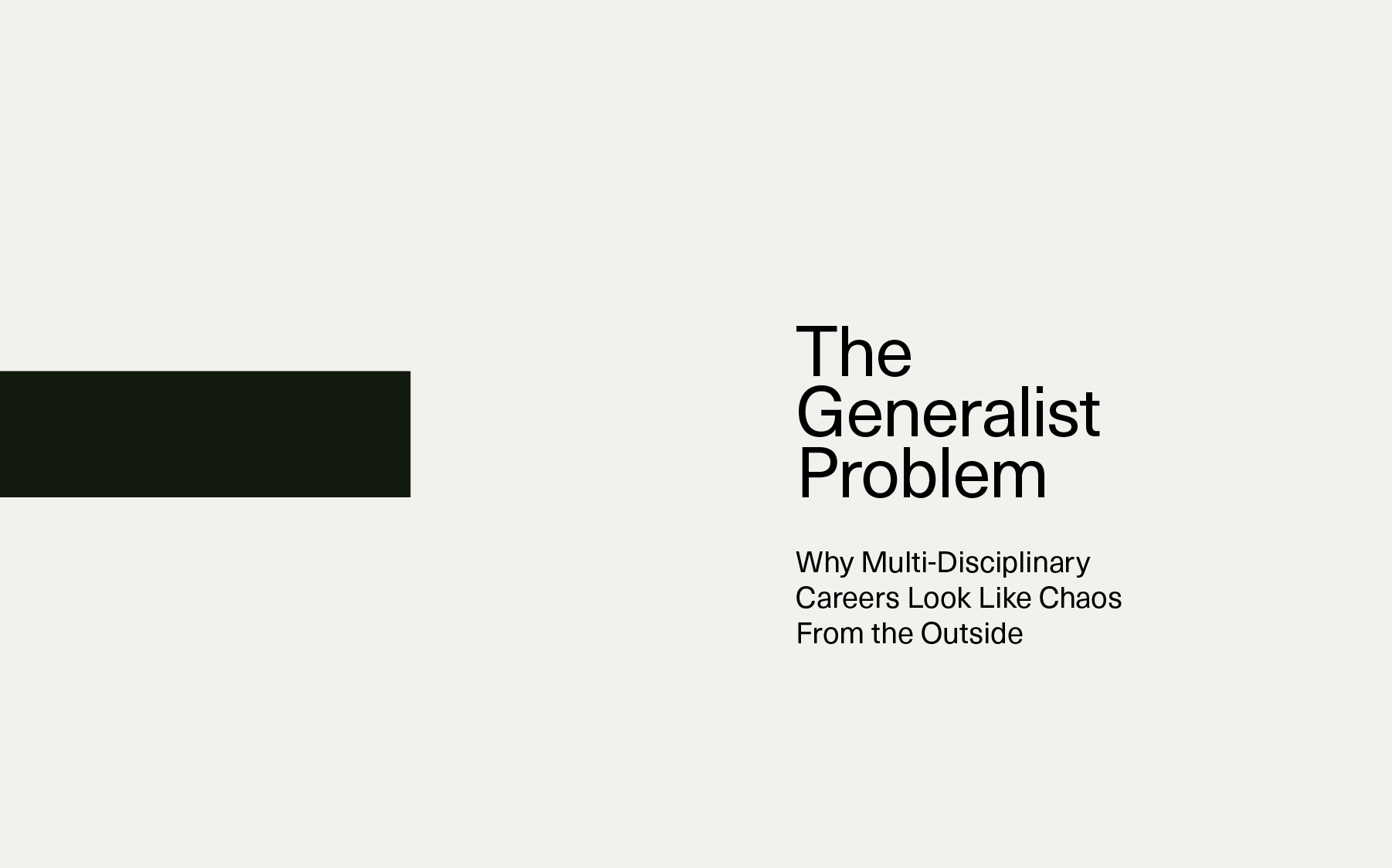 There’s a moment most generalists know well. You’re sitting across from someone you respect, asking for advice, and they say something that reveals they’ve never actually seen you. Not the real arc of your work. Not the through line. Just the surface — a series of job titles that don’t add up to anything legible by conventional standards.